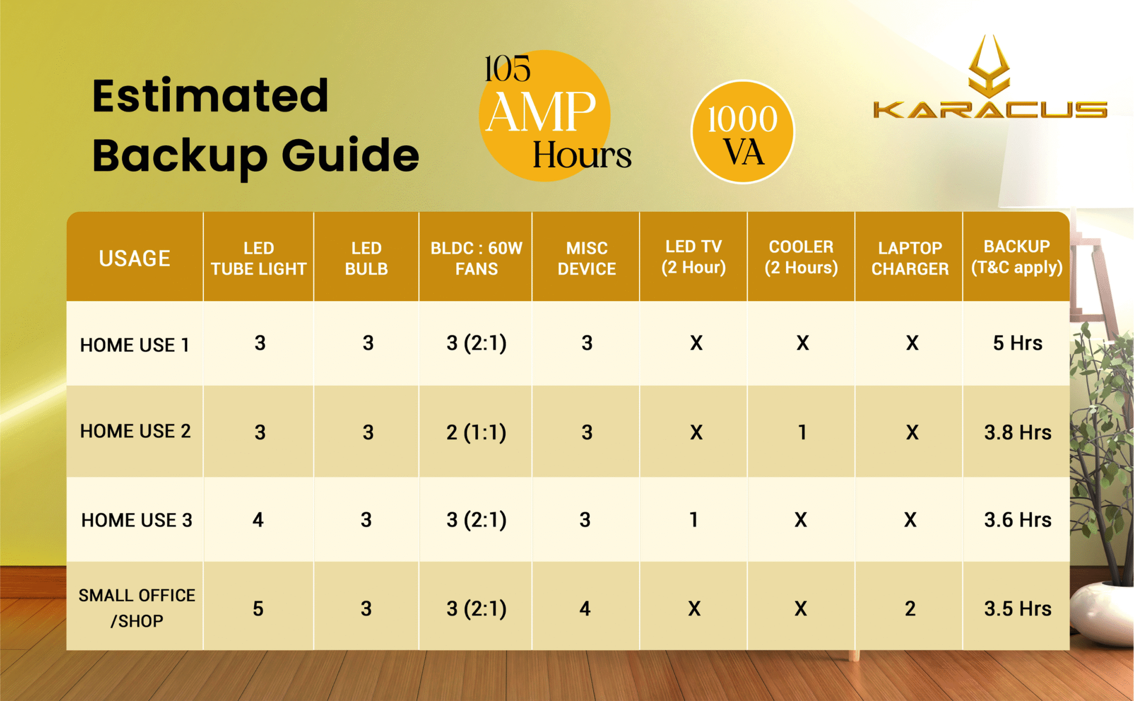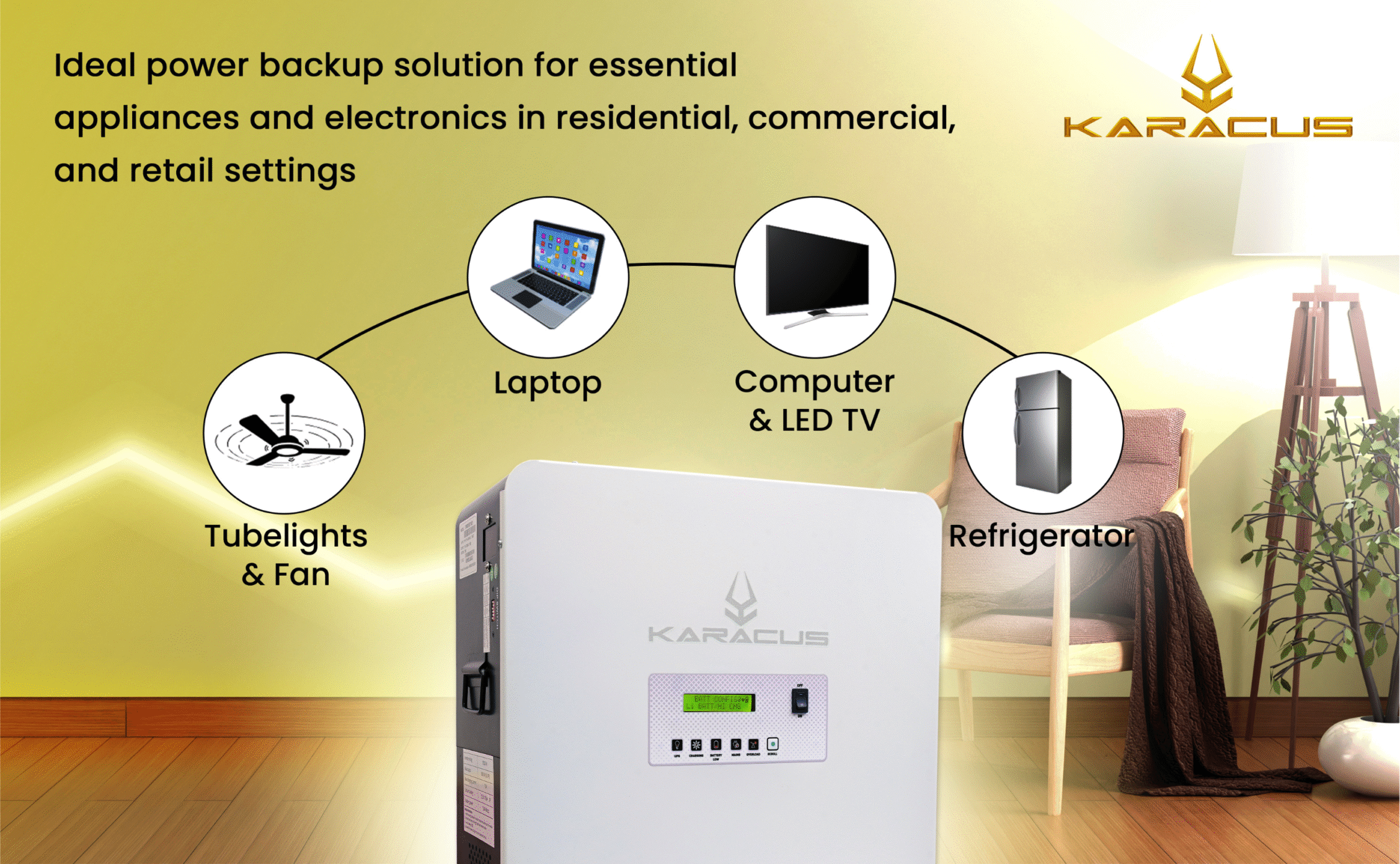 | Alarm (Audible) | Battery Low, Overload, Charger On, Inverter On |